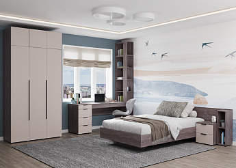 Стеллаж навесной Элис Мод.27 (Ясень Анкор темный/Тефия), ALICIA